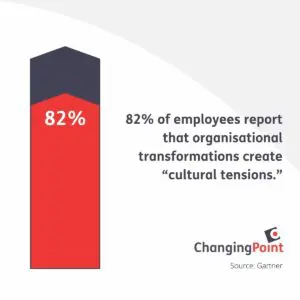 82% of employees experience cultural tensions during change, which exacerbates the stress of change and decreases employee performance. It’s up to change leaders to address these competing priorities and find a balance that aligns with the organisation’s goals and values. If done properly, change leaders can help employees navigate the complexities of change, minimise cultural tensions, and create a supportive environment where individuals feel empowered to adapt and thrive.