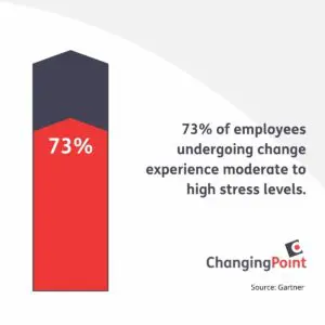 Change brings uncertainty; it disrupts people’s sense of control, established routines, or comfort zone. It’s understandable why Gartner found 73% of employees undergoing change experience moderate to high stress levels; the fear of the unknown and the loss of familiarity can weigh heavily on individuals, trigger anxiety, and make it difficult to adapt to new circumstances.