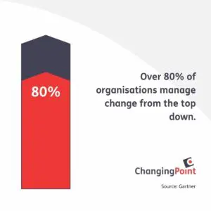 Gartner explains that senior leaders often make strategic decisions, create plans, and communicate with the workforce for buy-in. This worked in the past when organisations were vertical and hierarchical, aligning top-down change strategies with structure and workflow.