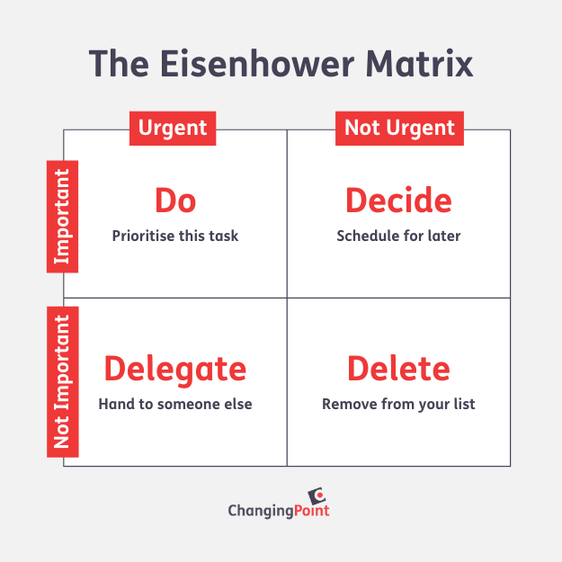 Decrease change disruption by considering whether a change is truly necessary or whether it can perhaps go on the back burner. You can use the Eisenhower Matrix to prioritise based on importance and urgency.